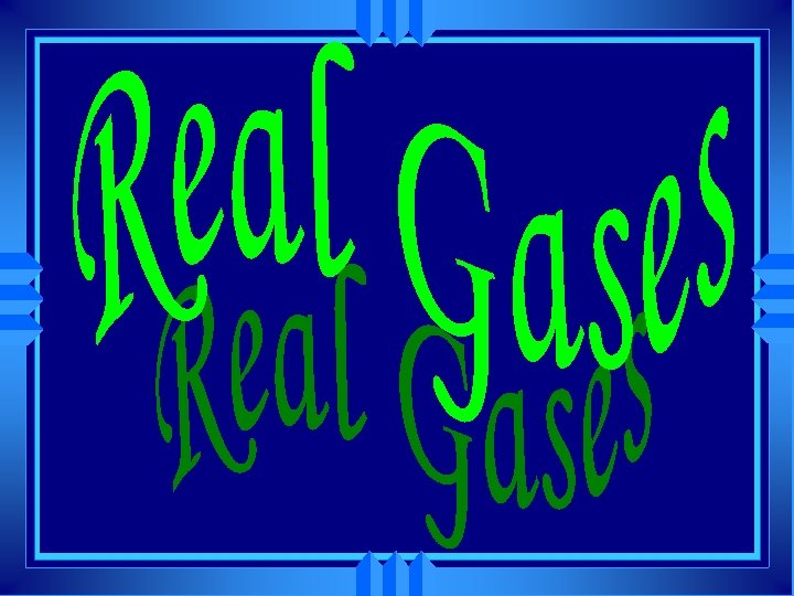 Real Gases behave like Ideal gases when. . . u. When molecules are moving fast • = high temperature u. Collisions are harder and faster. u. Molecules are not next to each other very long. u. Attractive forces can’t play a role.