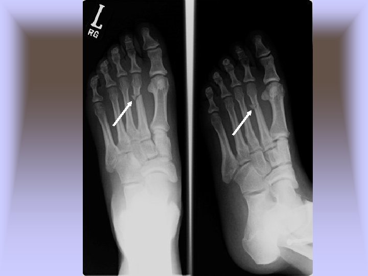 • Metatarsal Stress Fractures – Cause of Injury • 2 nd metatarsal fracture (March fracture) • Change in running pattern, mileage, hills, or hard surfaces • Often the result of structural deformities of the foot or training errors (terrain, footwear, surfaces) • Often associated with Morton’s toe – Signs of Injury • Pain and tenderness along second metatarsal • Pain with running and walking • Continued pain/aching when non-weight bearing