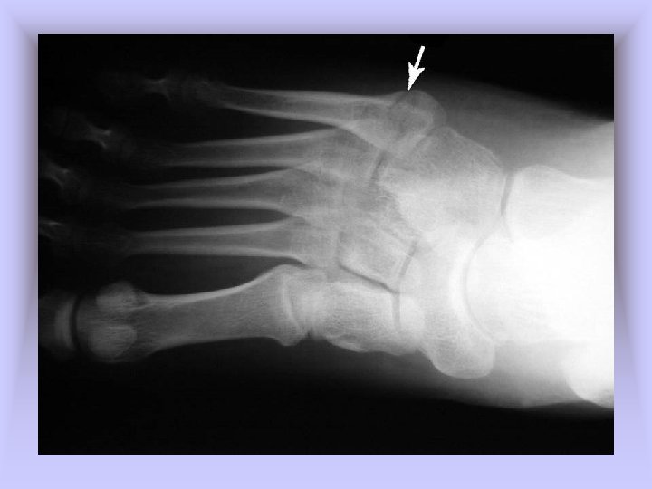 • Jones Fracture – Cause of Injury • Fracture of metatarsal caused by inversion or high velocity rotational forces • Most common = base of 5 th metatarsal – Sign of Injury • Immediate swelling, pain over 5 th metatarsal • May feel a “pop” • High nonunion rate and course of healing is unpredictable – Care • Generally requires 6 -8 weeks non-weight bearing with short leg cast if non-displaced • If nonunion occurs, internal fixation may be required