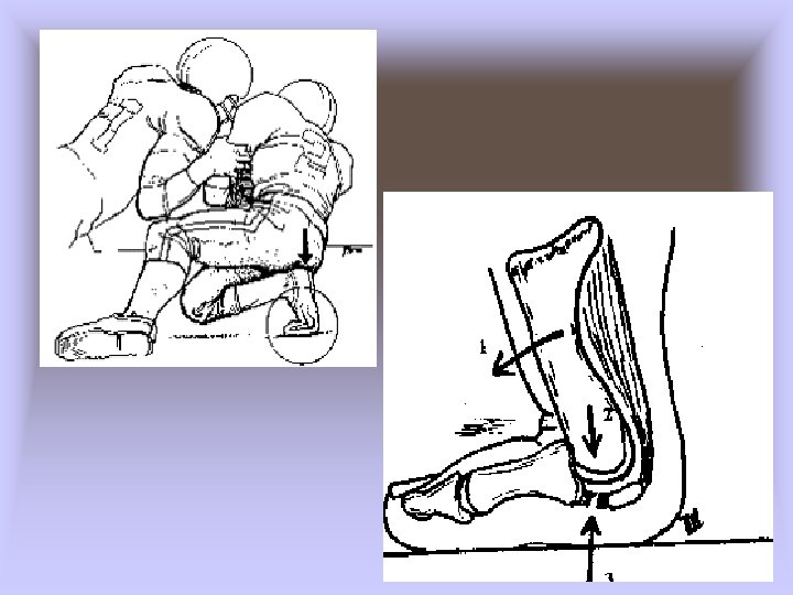 • Turf Toe – Cause of Injury • Hyperextension injury resulting in sprain of 1 st metatarsophalangeal joint • May be the result of single or repetitive trauma – Signs and Symptoms • Pain and swelling which increases during push-off in walking, running, and jumping – Care • Increase rigidity of forefoot region in shoe • Taping the to prevent dorsiflexion • Rest and discourage activity until pain free – 3 -4 weeks may be required for pain to subside
