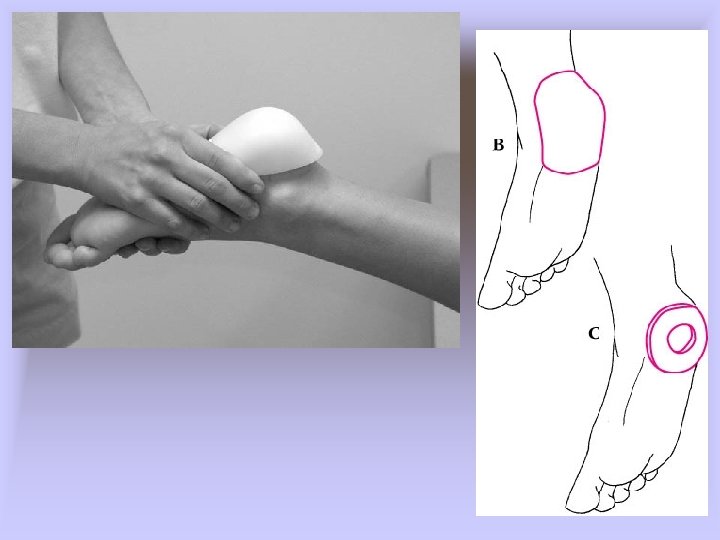 • Morton’s Neuroma – Cause of Condition • Thickening of nerve sheath (common plantar nerve) at point where nerve divides into digital branches • Commonly occurs between 3 rd and 4 th met heads where medial and lateral plantar nerves come together – Signs of Condition • Burning paresthesia and severe intermittent pain in forefoot • Pain relieved with non-weight bearing • Toe hyperextension increases symptoms