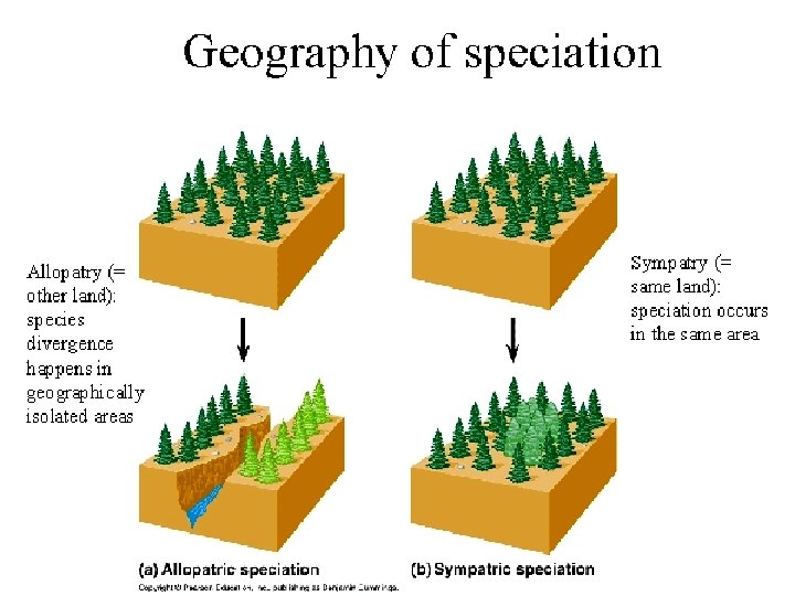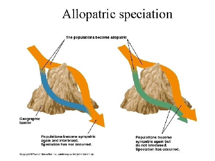 14. 3 Geographic Isolation Can Lead to Speciation • Key event in speciation is often separation of population • Allopatric speciation: block of gene pool due to geographic barrier • Speciation may not occur even if gene pool in population changes as result of local environment • Speciation occurs when reproductive barriers develop between new population and parental population