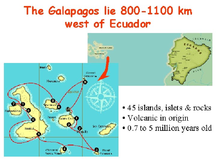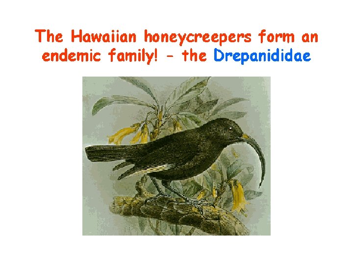 Hawaiian Islands • Volcanic islands • Species arrived by air and sea from America and Asia • Degree of genetic differentiation suggests founders arrived 3. 5 – 8 mya