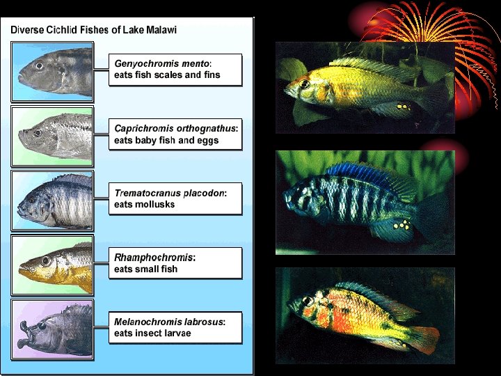 Origin of Galapagos Finches • About 10 mya original species arrived from S. A. • Found an isolated location relatively predator-free • Absence of competition permitted adaptive radiation • Produces wide range of species occupying a variety of niches
