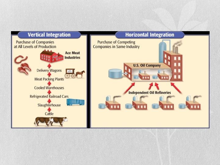 • Corporation is a business owned by stockholders, major decisions are made by a board of directors. • Trusts are businesses that merge together and turn over power to a board of trustees, the companies are then run like a single corporation. • When a trust gains complete control over an industry it held a monopoly