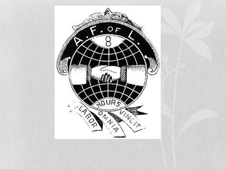 Workers Seek Change American Federation of Labor • After Haymarket Riot employers struck back at organized labor and unions • Forced employees to sign documents called yellow dog contracts saying they will NOT join unions • Blacklists: lists of people thought to be troublemakers, refused to hire them • Samuel Gompers founded the American Federation of Labor, won gains for the workers