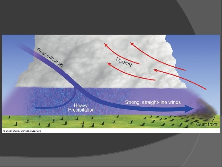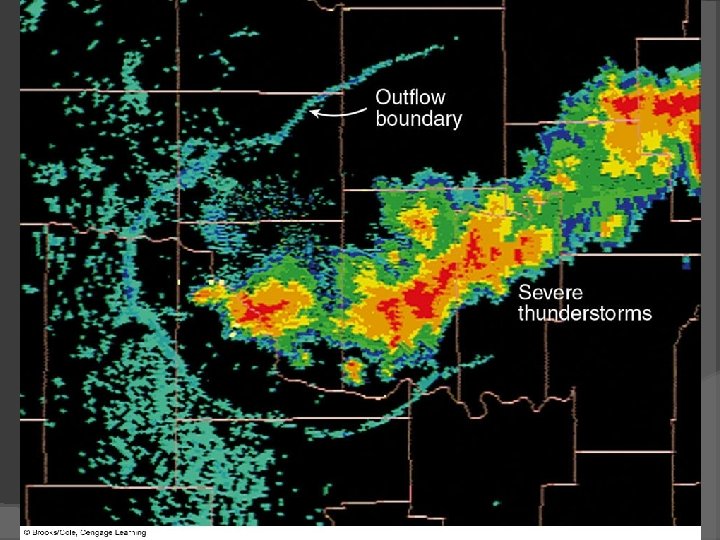 Thunderstorms Multi-cell Thunderstorms Gust Front: leading edge of the cold air out- flowing air; shelf cloud, roll cloud, outflow boundary