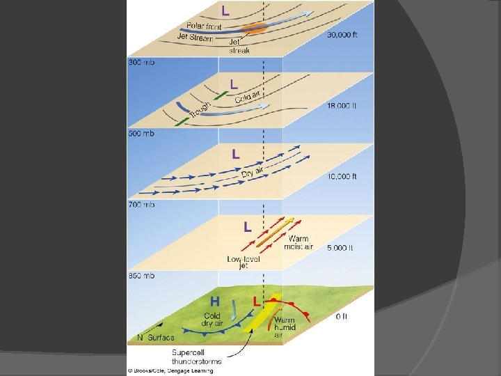 Thunderstorms Supercell thunderstorms Strong vertical wind shear Surface, 850 mb, 700 mb, 500 mb, 300 mb conditions low-level jet