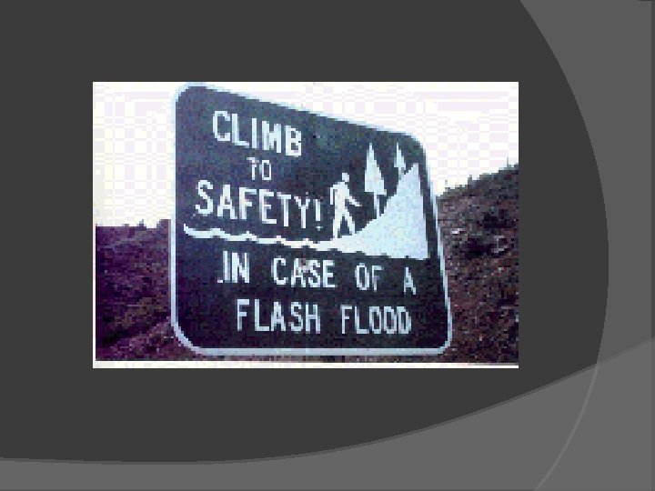 Flash Floods Slow moving or Stalled thunder Storm, especially in canyon areas 135 deaths in 1976 flood 12 inches of rain in 4 hours (normal ~16 inches /year)