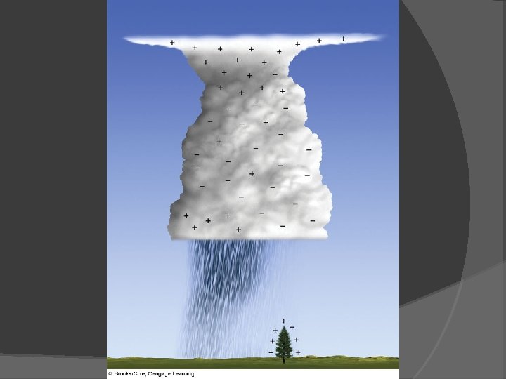 Thunderstorms Lightening and Thunder Lightening: discharge of electricity in mature storms (within cloud, cloud to ground) Thunder: explosive expansion of air due to heat from lightening Electrification of Clouds: graupel and hailstones fall through supercooled water, ice crystals become negatively charged Upper cloud positive, bottom cloud negative