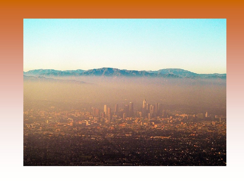 Thermal Inversions © Normal Conditions- Temp. decreases as altitude increases, BUT. . . © Thermal Inversion- when a relatively warm layer of air at mid-altitude covers a layer of cold, dense air below. © The warm inversion layer traps emissions that then accumulate beneath it. © Common in some cities where high concentrations of vehicle exhaust and industrial emissions are easily trapped © EX: ? ?
