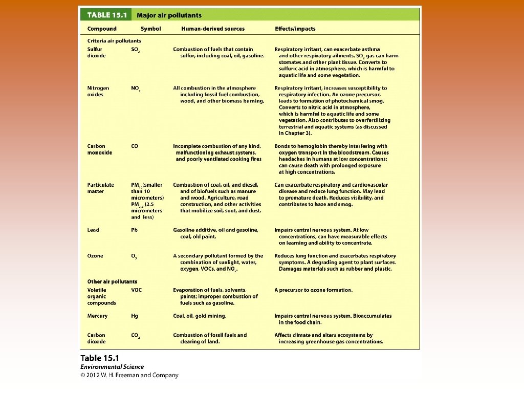 Major Air Pollutants © Sulfur Dioxide © Nitrogen Oxides © Carbon Oxides © Particulate Matter © Volatiles Organic Compounds © Ozone © Lead © Mercury