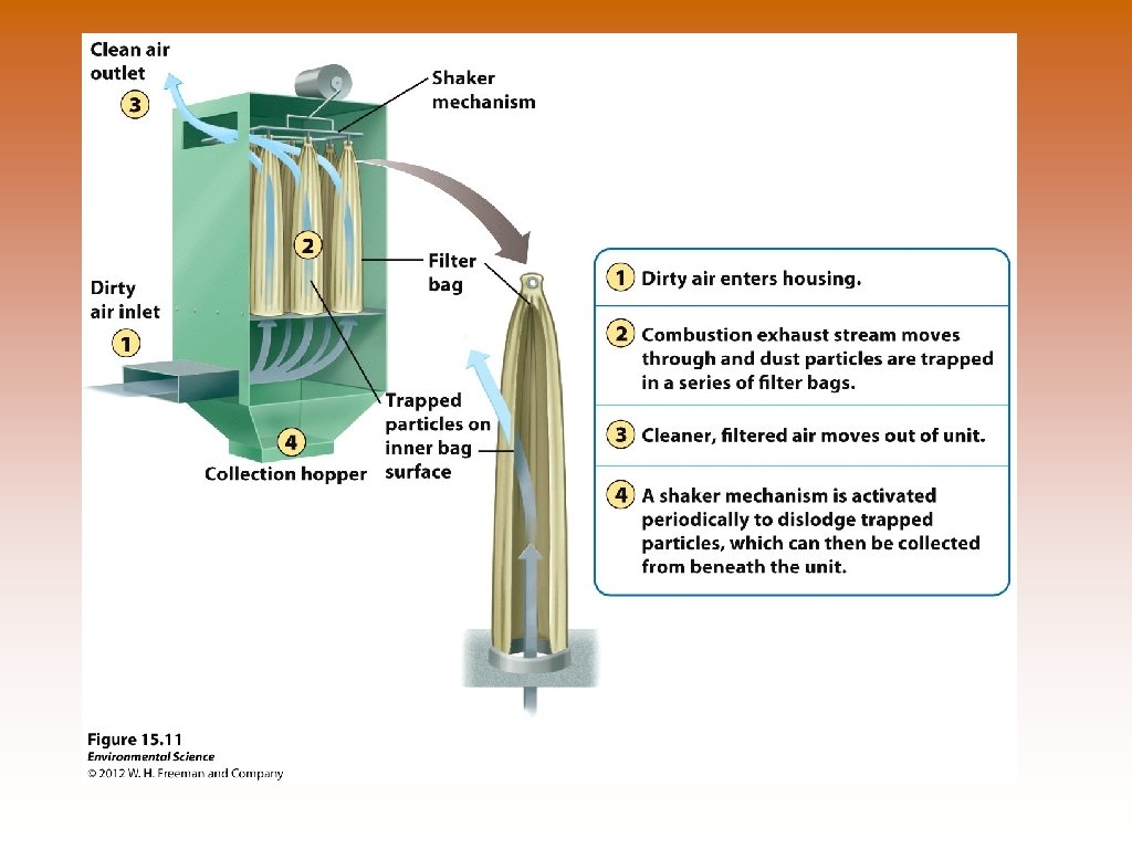 Ways to Prevent Air Pollution © Removing sulfur dioxide from coal by fluidized bed combustion © Catalytic converters on cars © Scrubbers on smoke stacks © Baghouse filters © Electrostatic precipitators