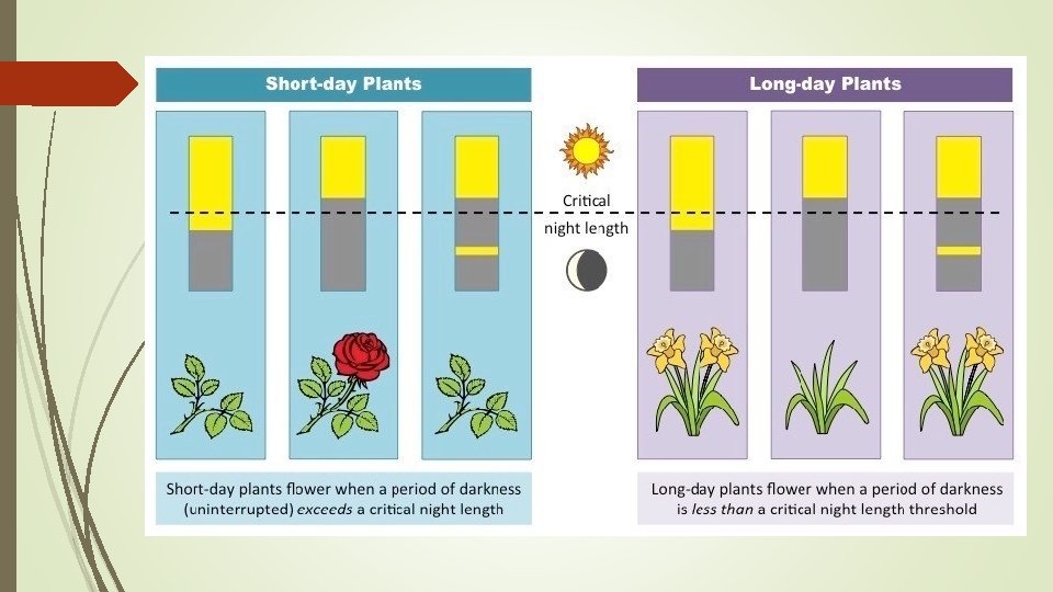 Long-day Plants Need a short period of darkness before it can bloom Even if there is only a very short amount of light, it can be enough