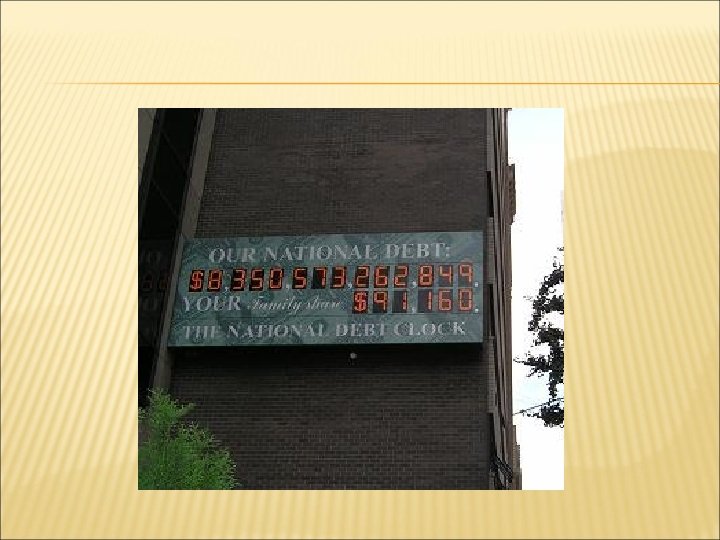 THE NATIONAL DEBT The Difference Between Deficit and Debt � The deficit is amount the government owes for one fiscal year. The national debt is the total amount that the government owes. Measuring the National Debt � In dollar terms, the debt is extremely large: $5 trillion at the end of the twentieth century. Economists often measure the debt as a percent of GDP. The national debt is the total amount of money the federal government owes. The national debt is owed to anyone who holds U. S. Savings Bonds or Treasury bills, bonds, or notes.
