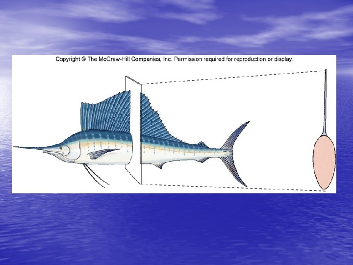 Swimming • Epipelagic predators must be able to swim quickly to • capture prey This is accomplished by a streamlined body to reduce drag and a strongly forked caudal tail to increase thrust.