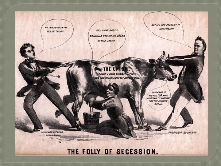 The Union Responds to Secession �How did President Buchanan and other Northerners respond to secession? • Buchanan argued against secession �Said the federal government, not states, was sovereign • Northerners thought it was unconstitutional