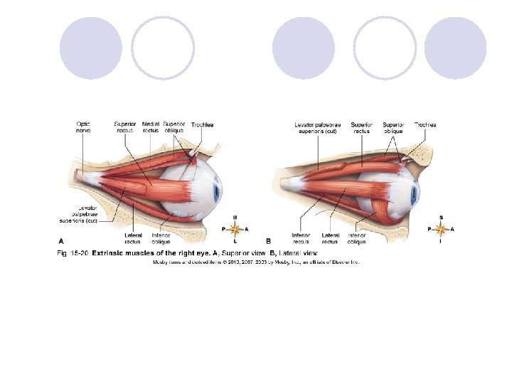 VISION: THE EYE (cont. ) ¡Muscles of the eye l. Extrinsic eye muscles: skeletal muscles that attach to the outside of the eyeball and bones of the orbit • Named according to their position on the eyeball • Include the superior, inferior, medial, and lateral rectus muscles and superior and inferior oblique muscles l. Intrinsic eye muscles: smooth muscles located within the eye • Iris: regulates size of pupil • Ciliary muscle: controls shape of lens