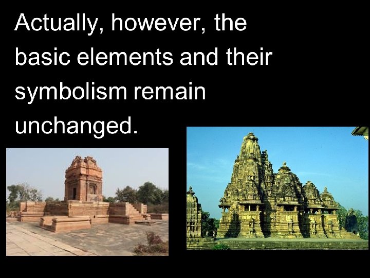 • The mandapas serve as spaces for ritual, such as dances performed for the deity, and for the presentation of offerings. • The temple is built of stone blocks using only post-and-lintel construction. • Because vault and arch techniques are not used, the interior spaces are not large.