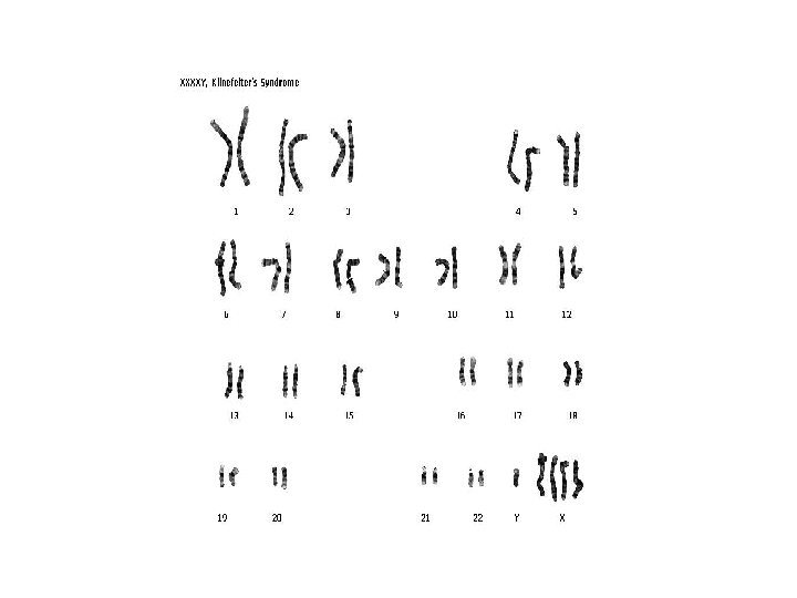2) Nondisjunction of SEX CHROMOSOMES a)XXY individuals: Klinefelter syndrome • Male sex organs • Small, sterile testes • Female body characteristics, including some breast development