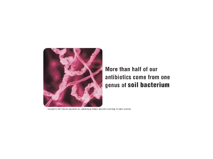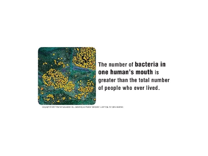 • Not all bacteria are harmful to humans. – Nearly all life on Earth depends on bacteria and other microbial life in one way or another. Copyright © 2007 Pearson Education Inc. , publishing as Pearson Benjamin Cummings