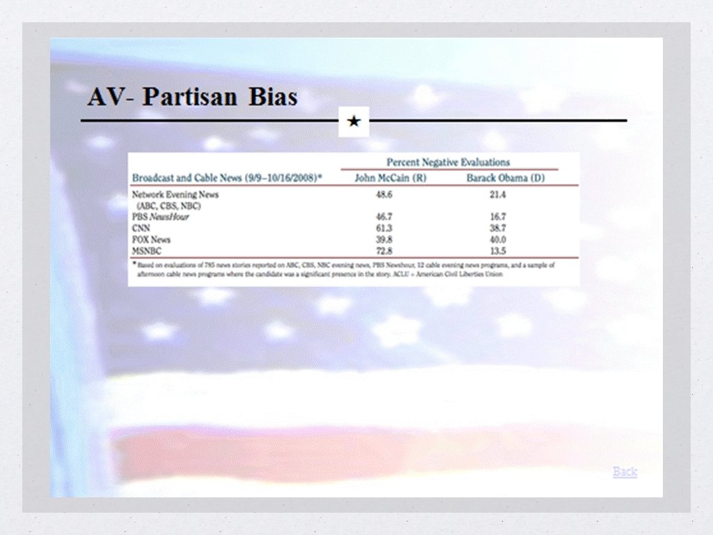 Media Bias What is bias Reporters have liberal bias but editors/owners do to Does it come out in the news? Not really but incumbents/negative/President vs Congress/lack of substance Ways to deal with possible bias