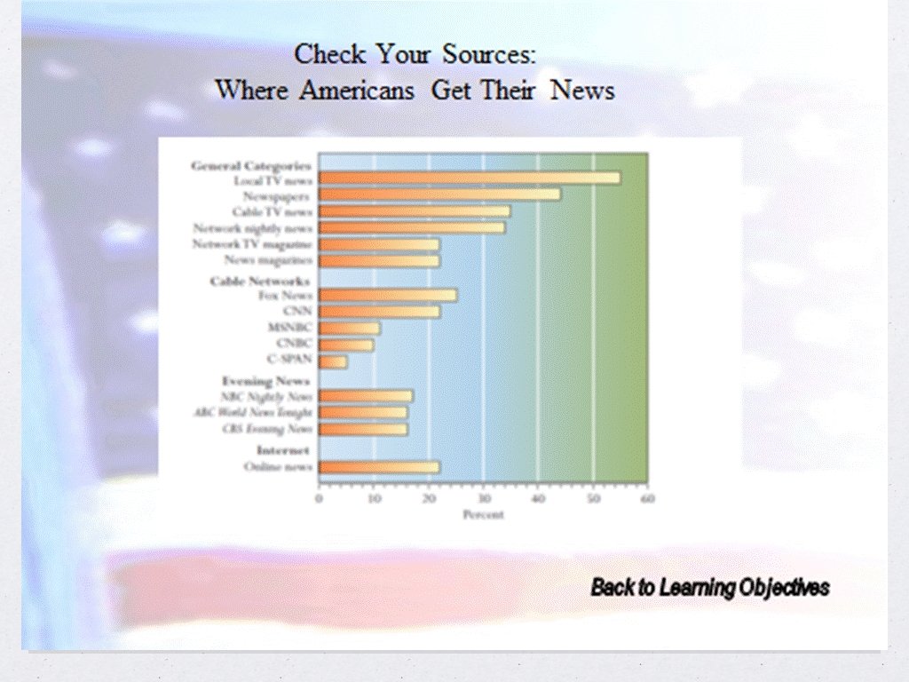 Media and the Public Knowledge is POWER Ninety-eight percent of all Americans have a least one TV There are over 1500 newspapers with daily circulations of 60 million There are three major weekly news magazines that claim nearly 10 million readers (Time, Newsweek, and US News and World Report)