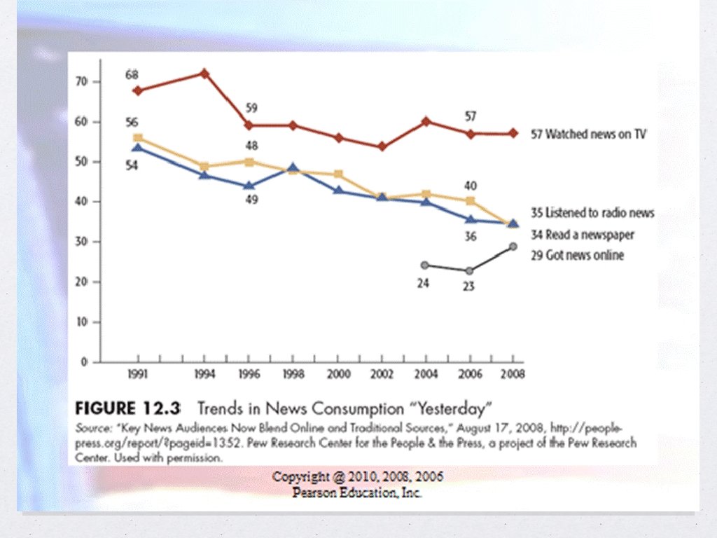 Current News Media Trends Consolidation of privately-owned media Top 10 media chains account for more than 50% of daily circulation Concerns Market pressures Control of the flow of informaiton