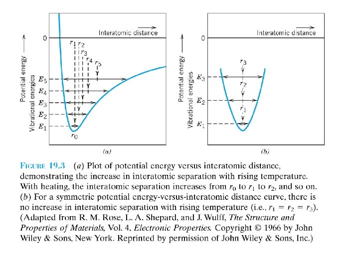 In many materials, the value of isotropic, is approximately is anisotropic. For materials. Potential energy curve (bond energy curve) Figure 19. 3 a Heating to successively higher temperatures (T 1, T 2, T 3, etc. ) raises the vibrational energy from E 1 to E 2 to E 3, and so on. F 19. 3 The average interatomic distance increases with temperature from r 0 to r 1 to r 3 , and so on. Thermal expansion is really due to the asymmrtric curvature of this potential energy trough, rather than the increased atomic vibrational amplitudes with rising temperature. If the potential energy curve were symmetric (Figure 19. 3 b), there would be no thermal expansion.