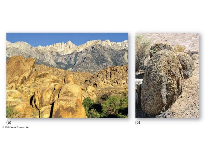 Temperature • • Temperature changes weather rock much more slowly than wedging Changes are very small • Temperature weathering functions through the forced expansion and contraction of rock materials • • This changing state in temperature weakens the strength of mineral grains in the rock Intense heating from wildfires can increase the effects of temperature weathering