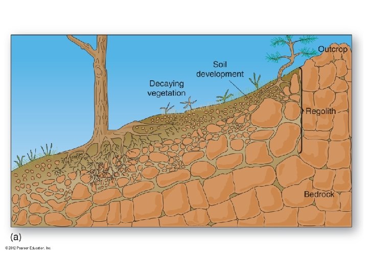 Weathering & Rock Openings • Weathered rock is bedrock that has become exposed at the surface. –Different color and texture from non-weathered rock of the same type –Surface rock is “looser” than deeper rock –Cracks or crevices allow for weathering agents to change rock features