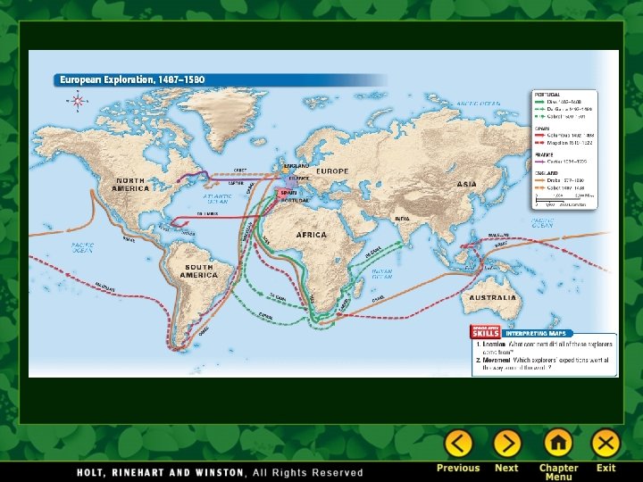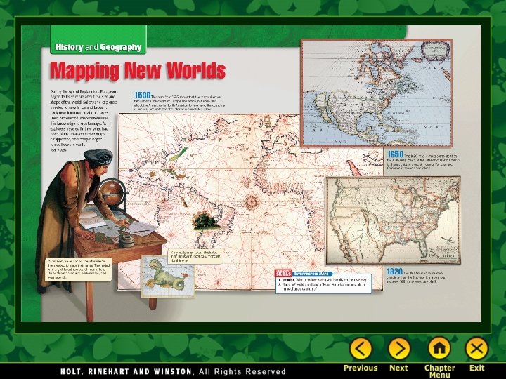 A New European Worldview • The explorations brought new knowledge and geography and proved that some old beliefs were wrong. • Improved mapmaking, or cartography, showed new lands and new possible trade routes. • New trade routes gave new opportunities for wealth and resources. • Europeans could now spread their influence around the world.