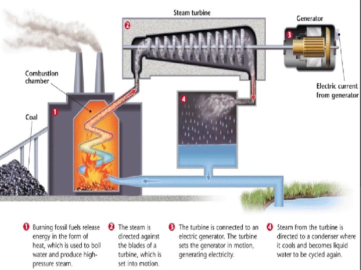 Power Plant 1. Boil water Coal or gas heated 2. Stream 3. Turns turbine