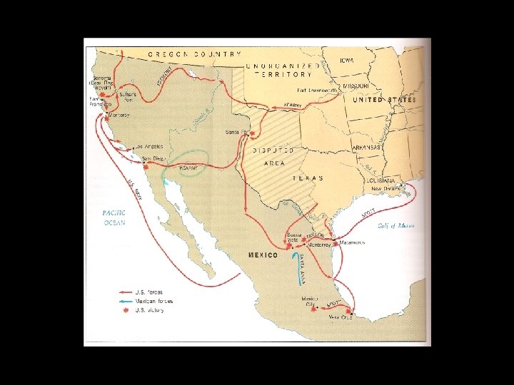 The Battles of the Mexican War Americans let Santa Anna back into Mexico believing he would sell out his country; instead he leads a desperate defense of Mexican soil § Captain John C. Fremont leads the Bear Flag Revolt, and overthrows Mexican rule in northern California § Zachary Taylor fights across the Rio Grande and at Buena Vista repels Santa Anna’s force of 20, 000 with only §