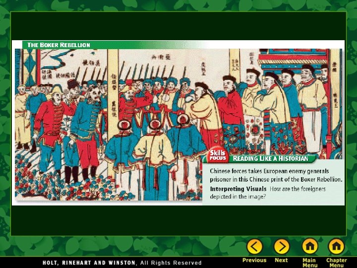 The Open Door Policy gives the United States an equal footing in China. • European powers gained spheres of influence in China. • The United States feared it would be shut of the valuable China trade. • Secretary of State John Hay proposed the Open Door Policy, giving all nations equal trading rights in China. • Increased foreign presence in China led to the Boxer Rebellion. • Western nations cooperated to quell the rebellion and continue exploitation of Chinese trade.