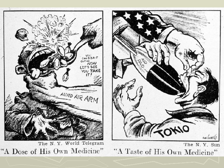 The Plan in the Pacific ► Play Defense § Prevent more land from being taken ► Recapture 1 island at a time § “island hopping” ► Use planes to bomb Japanese cities § Lower their spirits § target military related areas ► After war with Germany and Italy ends § Land invasion of Japan