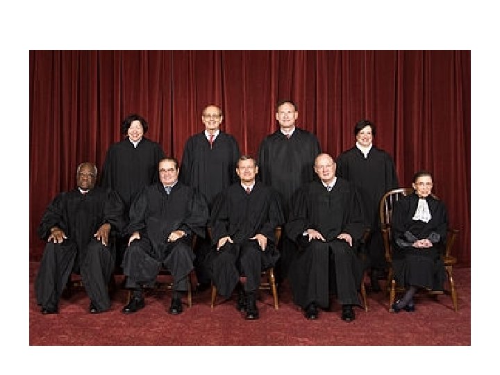 III) THE U. S. SUPREME COURT • A. ) ORGANIZATION OF THE SUPREME COURT • 1) 9 JUSTICES--1 CHIEF AND 8 ASSOCIATE JUSTICES • The Court Active members • John Roberts--17 th & current Chief Justice • Elena Kagan · Antonin Scalia • Anthony Kennedy · Sonia Sotomayor • Clarence Thomas · Ruth Bader Ginsburg • Stephen Breyer · Samuel Alito • 2) 1 st woman on the Supreme court was • -Sandra Day O'Connor • 3) 1 st African American on the court was – Thurgood Marshall