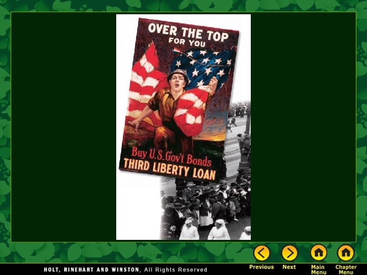 Mobilizing the Economy • Going to war was extremely expensive, and President Wilson needed to find ways to pay for it. Taxes Loans and Liberty Bonds • Congress passed the War Revenue Act of 1917, which established very high taxes. • Wilson sparked an intense campaign to sell Liberty Bonds. • It taxed wealthy Americans up to 77 percent of their incomes. • They were a form of loan to the government from American people. • It increased federal revenue by 400 percent within two years. • The national debt grew from $1. 2 billion to $25. 5 billion in three years. Regulating Industry • Congress created administrative boards to prepare industries for war. • The War Industries Board (WIB) regulated all war materials. • It increased industrial production by 20 percent.