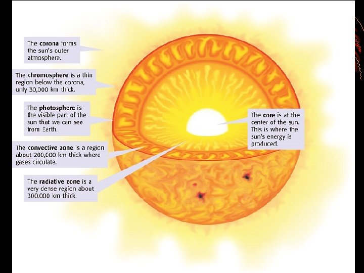 The Sun: Our very own star Sun- a large ball of gas made mostly of hydrogen (H) and helium (He) - sun’s energy comes from nuclear fusion ( combination of the nuclei of small atoms to form a larger nucleus)