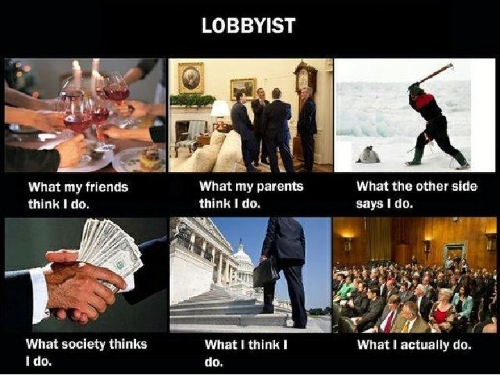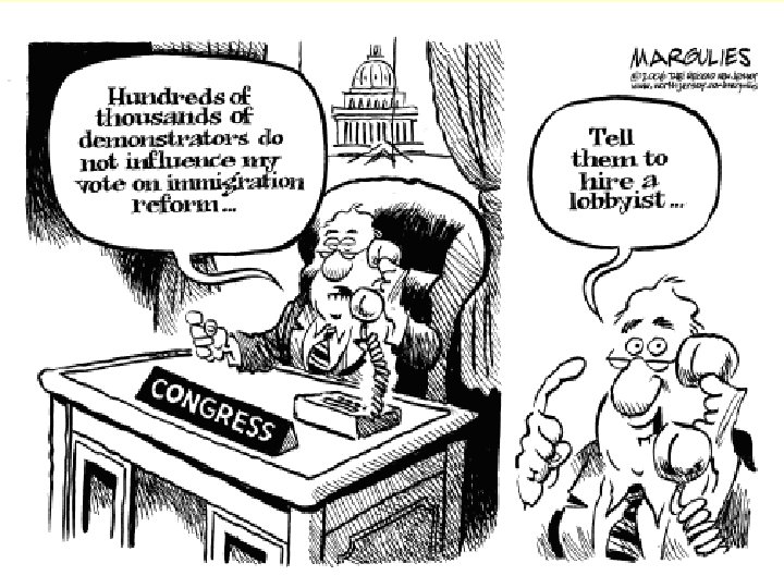 Criticisms of Lobbying § They “buy” off candidates through campaign contributions, gifts, and travel.