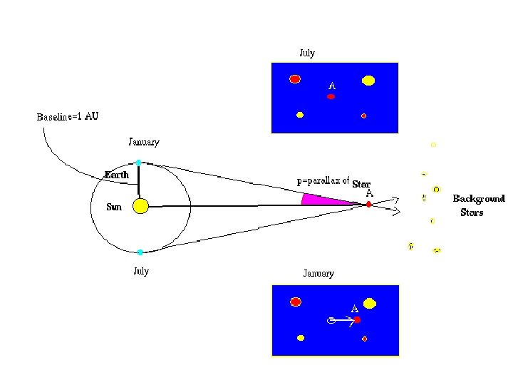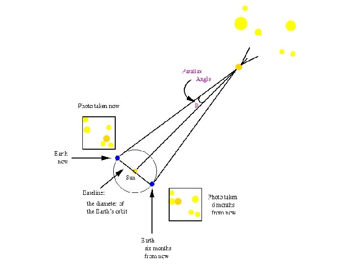 This is not effective for very distant stars. The angle formed by parallax is measured in arc seconds.