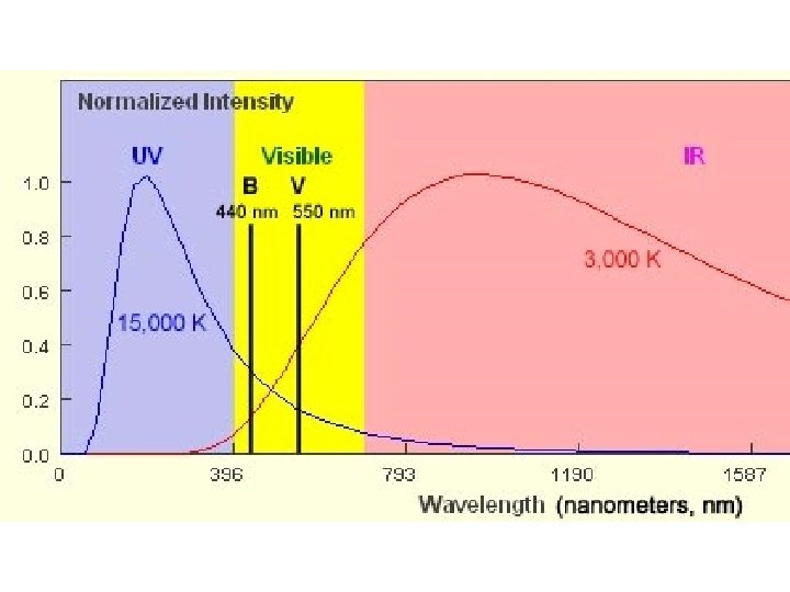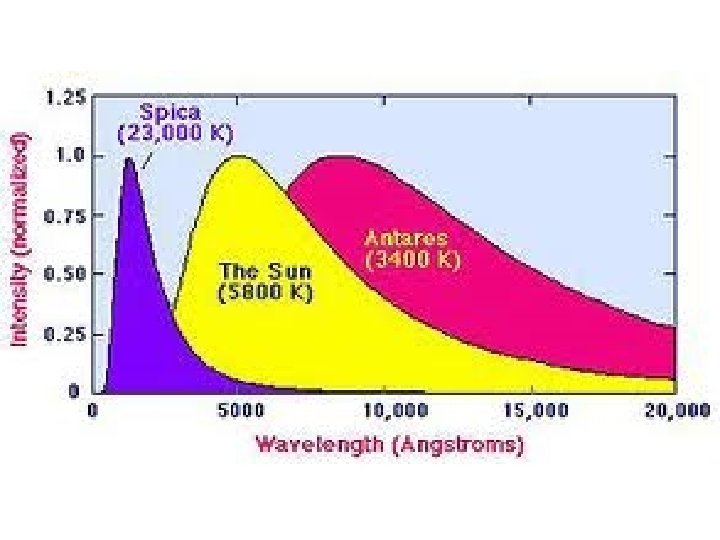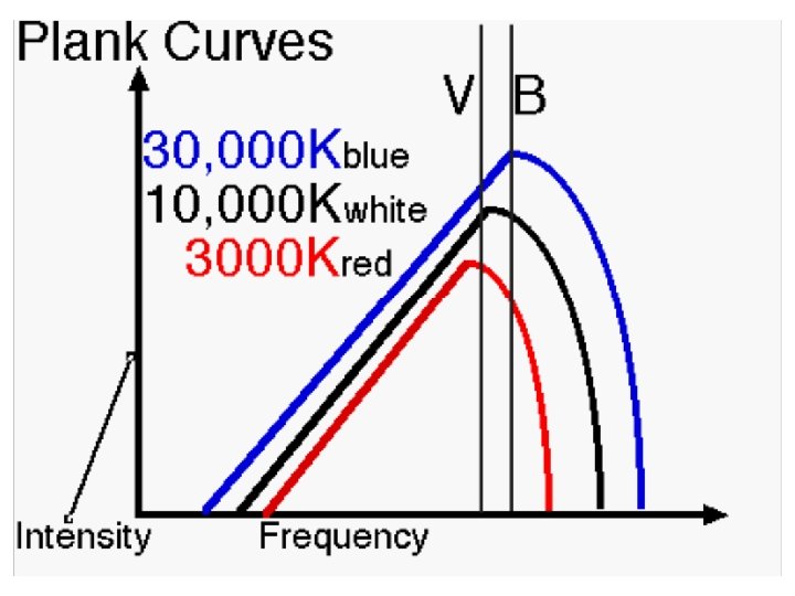 Color Index B/V Temp Color 1. 7 30, 000 K electric blue 1. 3 20, 000 K blue 1. 0 10, 000 K white 0. 8 8, 000 K yellow-white 0. 6 6, 000 K yellow 0. 4 4, 000 K Arcturus, 0. 2 3, 000 K Example Rigel Vega, Sirius Canopus the Sun, Alpha Centauri orange red Aldebaran Betelgeuse