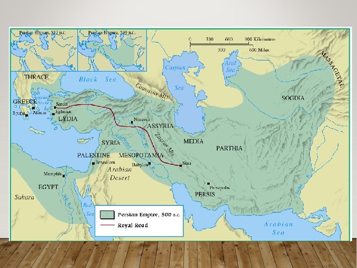 EXPANDING THE EMPIRE • Darius (521 -486 BC) strengthened empire even more, • Codifies Egyptian law • Builds a canal to connect the Red & Mediterranean Seas • Extended his eastern border to the Indus River • Advanced into Europe by making the Macedonian king a vassal • Revolt in the Greek Ionian city-states leads him to invade Geece • The invasion of Greece failed, culminating w/ the Athenian victory at Battle of Marathon