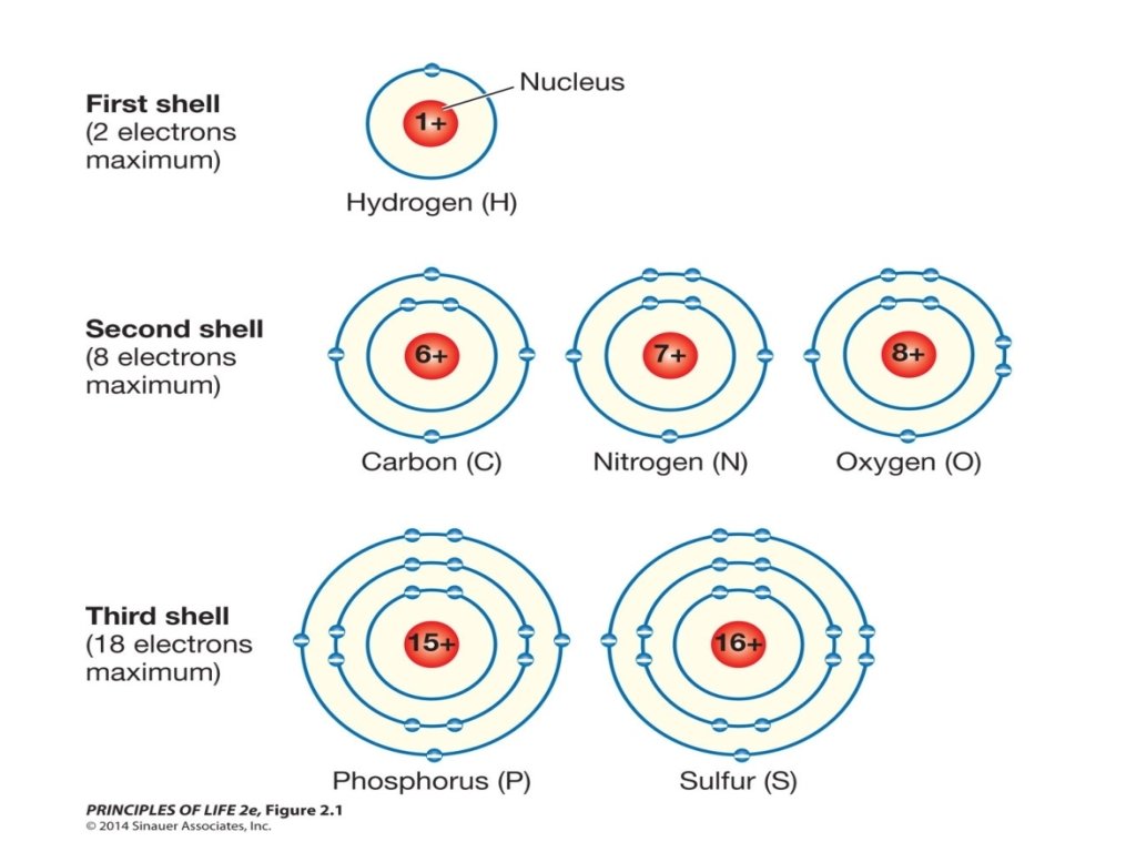Octet rule: • For elements 6– 20, an atom will lose, gain, or share electrons in order to achieve a stable configuration of 8 electrons in its outermost shell. • When atoms share electrons, they form stable associations called molecules.