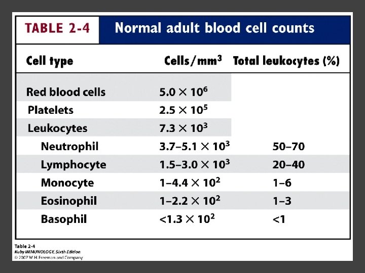 Kindt • Goldsby • Osborne Kuby IMMUNOLOGY Sixth Edition Chapter 2: Cells and Organs of the Immune System Copyright © 2007 by W. H. Freeman and Company