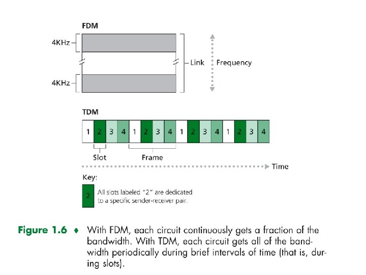 The Circuit in link is implemented FDM or TDM Circuit Switching: FDM and TDM Example: FDM( Frequency-division multiplexing ) 4 users frequency time TDM( Time-division multiplexing) frequency time 15
