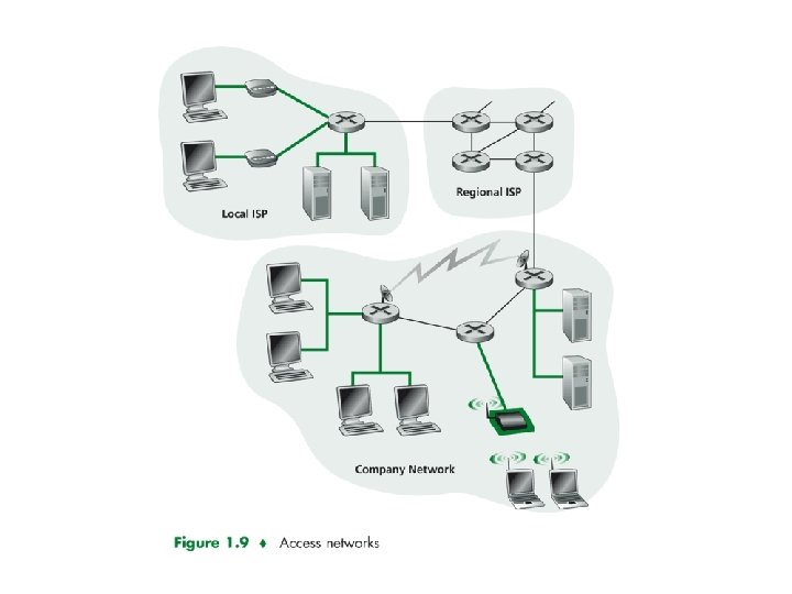 Wireless access networks shared wireless access network connects end system to router via base station ( wireless access point) wireless LANs: 802. 11 b (Wi. Fi): 11 Mbps Ch 8 wider-area wireless access provided by telco provider. Serves users within a radius of 10 Km. router base station mobile hosts 43