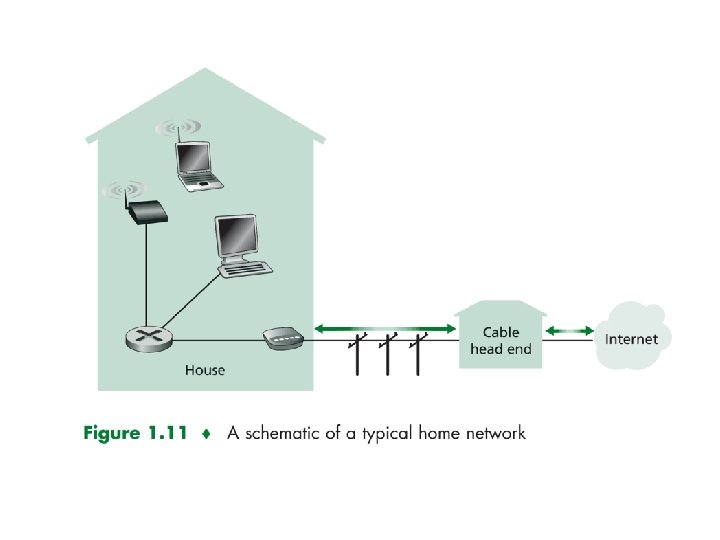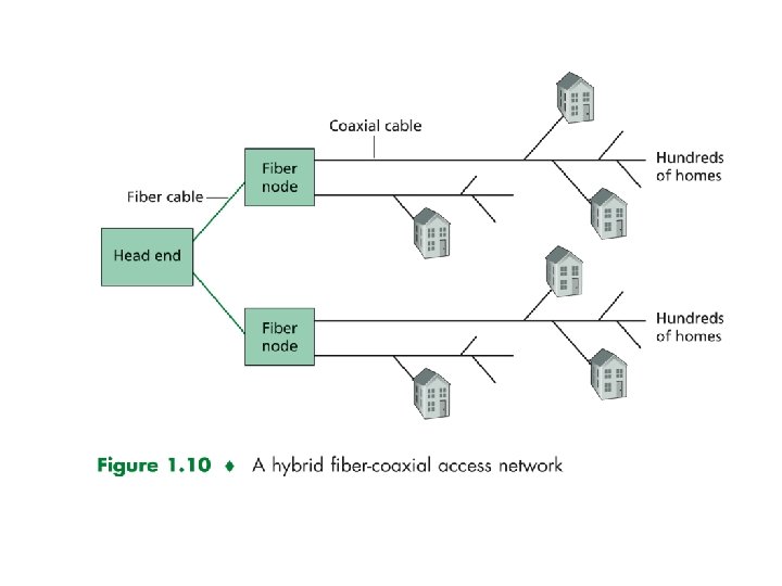Residential access: cable modems HFC: hybrid fiber coax asymmetric: up to 30 Mbps downstream, 2 Mbps upstream Requires special modem called Cable Modems. HFC shared broadcast medium. 40