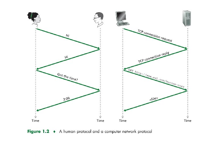What’s a protocol? a human protocol and a computer network protocol: Hi TCP connection request Hi TCP connection response Got the time? Get http: //www. awl. com/kurose-ross 2: 00 <file> time Q: Other human protocols? 64