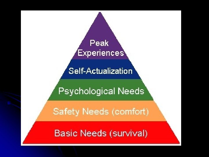 Maslow’s Hierarchy l Abraham Maslow l. A theorist who that described a ladder of human needs that people of all ages experiences l Maslow believed l You must need your basic needs before you can start to think about your higher needs